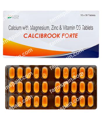 Calcibrook Forte is a dietary supplement used to support bone health and calcium balance in the body. It helps prevent calcium deficiency and supports normal bone and teeth development. Calcium carbonate (1000 Mg) + Magnesium Hydroxide (Milk Of Magnesia) (240 Mg) + Vitamin D3 (Cholecalciferol) (500 Iu) + Zinc Sulphate Monohydrate (11 Mg)